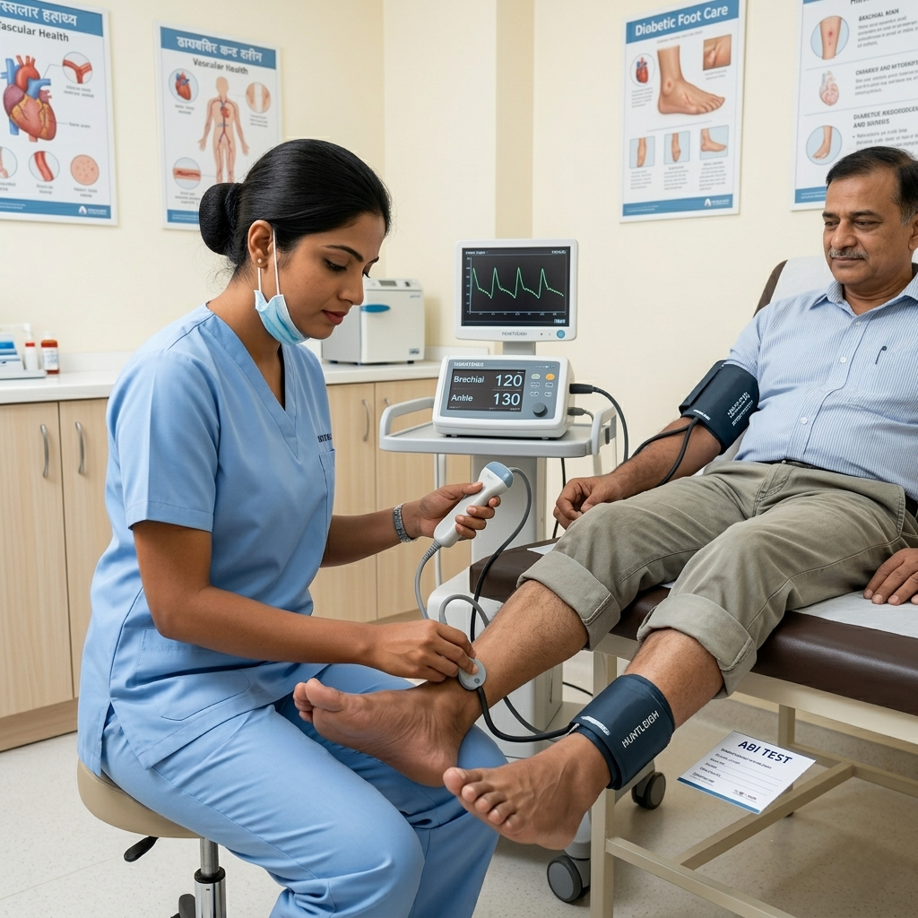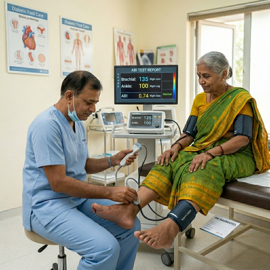 A non-invasive diagnostic test used to assess blood circulation in the legs and detect Peripheral Artery Disease (PAD), helping prevent serious diabetic foot complications.